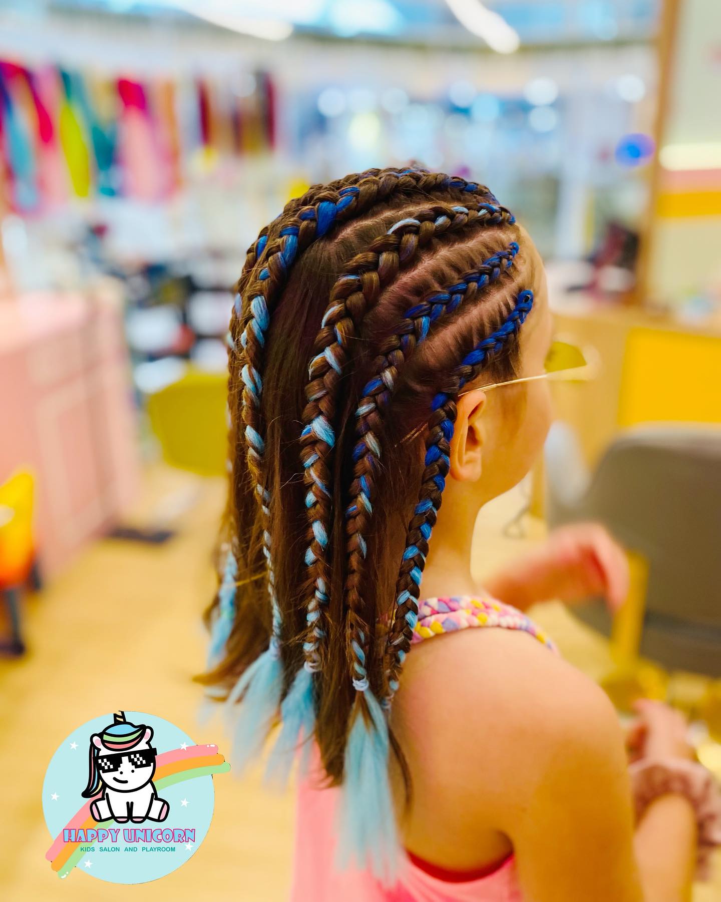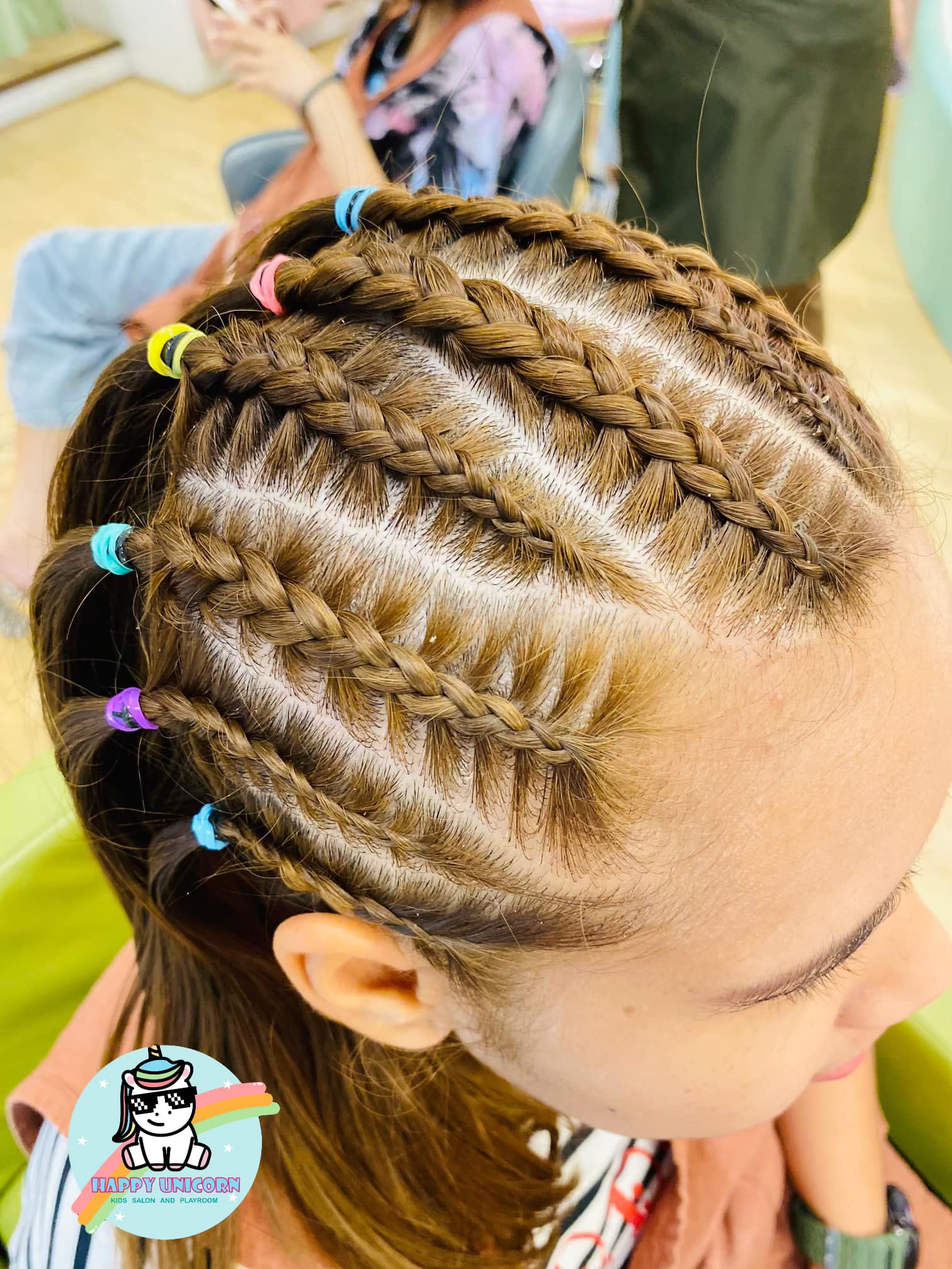 Playful and colorful cornrows designed just for kids — bright, creative, and easy to manage.