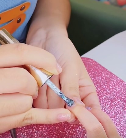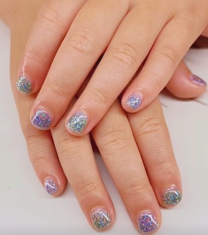 Safe, non-toxic manicure designed for kids — soft gel color and a touch of sparkle.